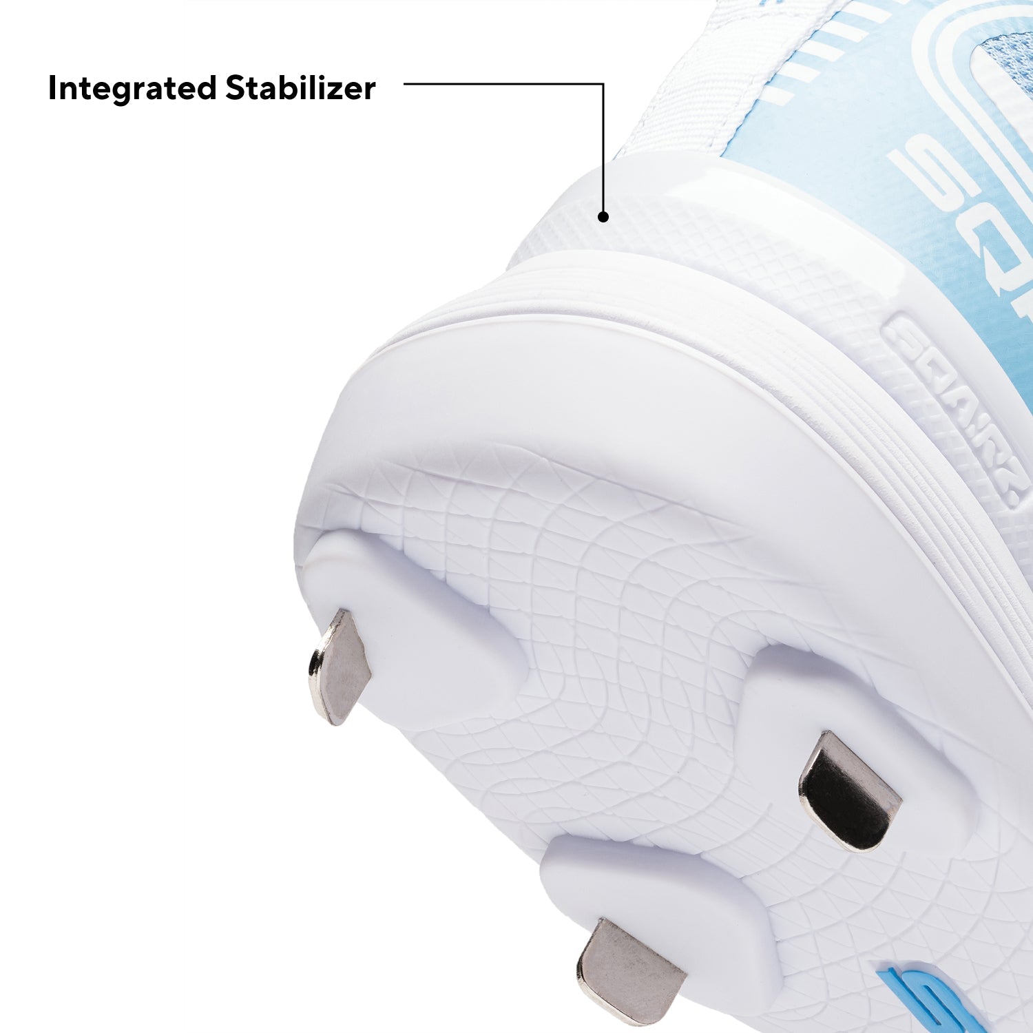 Patented Smart Traction metal spikes are optimally positioned for competitive play, with tall outer spikes for traction and stability, angled spikes for grip, and smaller TPU cleats in the middle creating a Power Channel for forefoot stability and ground connection.